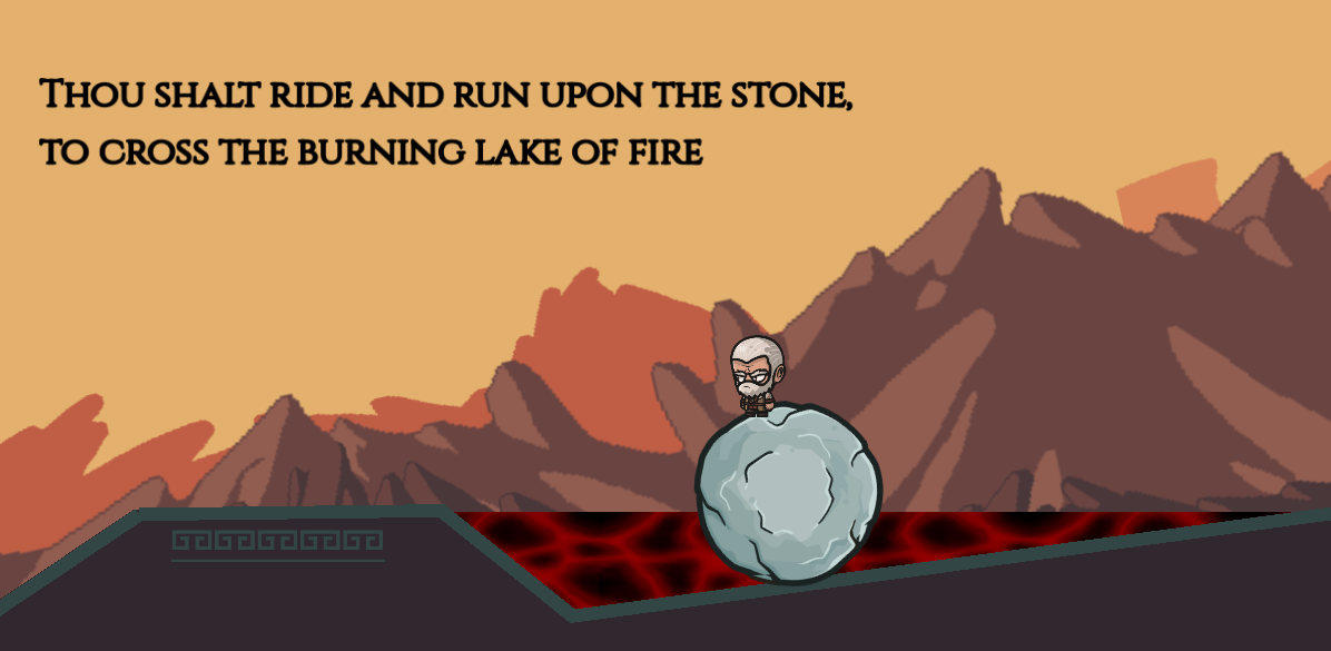 This video game is based on the famous Greek/Roman Myth of Sisyphus. He angered the gods by tricking them and trying to escape death. As punishment, he was sentenced to push a boulder up a mountain in hell. But every time he got close to the top, the enchanted boulder would roll back down. He was forced to repeat this task forever, to eternity.